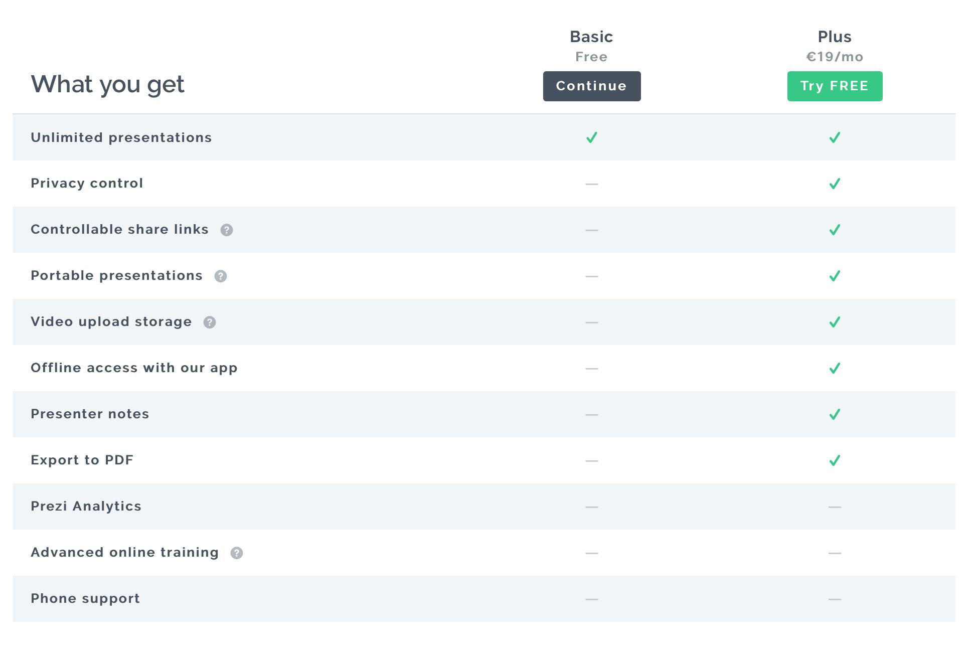 Visme is een nieuwe dienst en bevindt zich op dit moment nog in de bèta-fase. Het heeft hetzelfde businessmodel als Prezi en hier kies je voor Basic als je het niet erg vindt dat je presentaties openbaar zijn. Wil je je privacy kunnen regelen, dan moet je tien dollar per maand op tafel leggen.