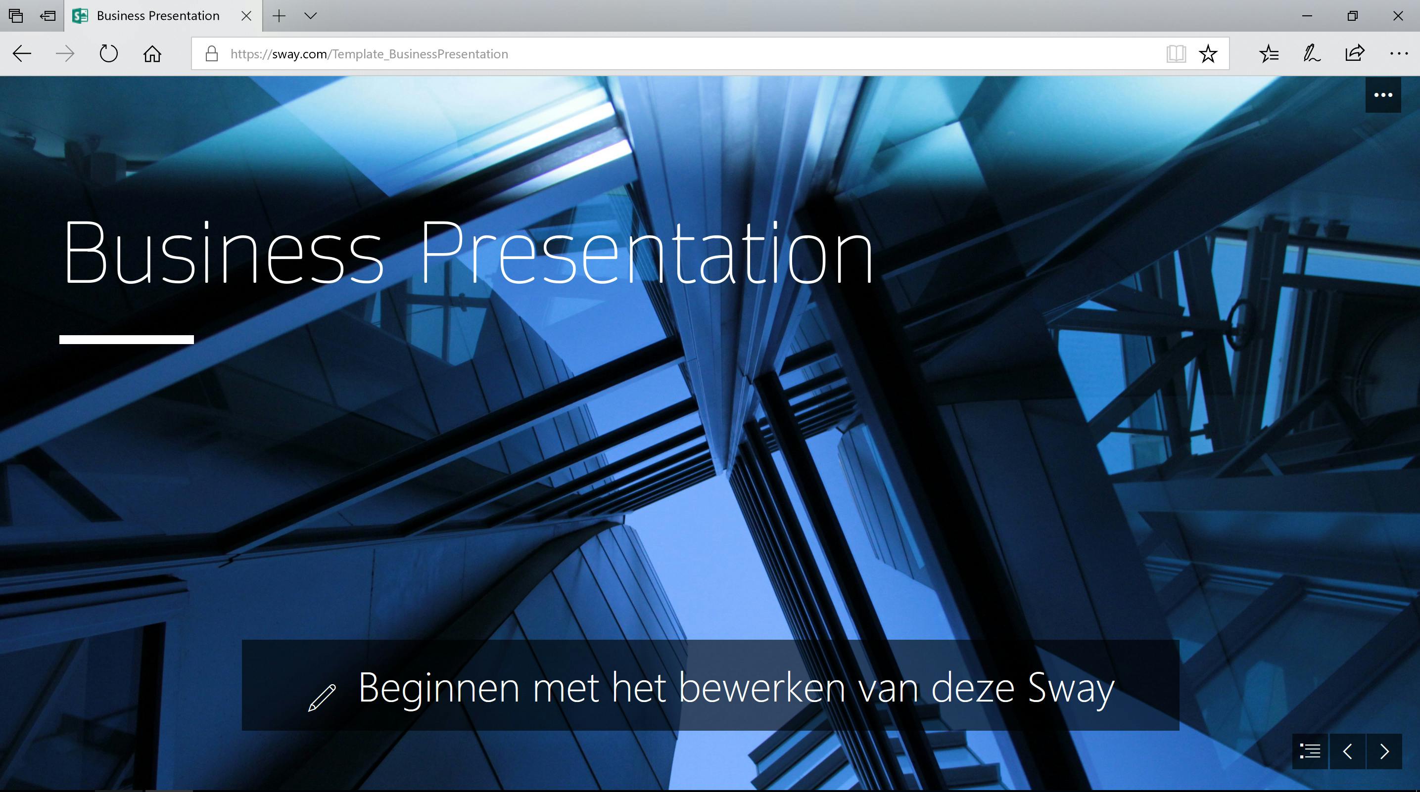 Microsoft heeft zelf ook een alternatief voor PowerPoint genaamd Sway. Het grootste verschil met PowerPoint is dat Sway geheel online te gebruiken is. Je hoeft je alleen maar aan te melden met je Microsoft-account. Je kunt een korte presentatie bekijken of meteen beginnen met een nieuwe presentatie door op Nieuwe maken te klikken. Sway heeft ook een aantal sjablonen beschikbaar als je inspiratie zoekt. Hiervoor klik je onder Beginnen met een sjabloon op een van de opties. De sjablonen zien er erg goed uit en door op het icoontje rechtsonder in beeld te klikken, zie je een horizontaal overzicht van al je dia’s. Sway geeft je bovendien tips voor een goede presentatie: waar moet je je hoofdpunt behandelen, waar moet je interesse kweken voor je presentatie enzovoort. Je kunt een presentatie exporteren als pdf-bestand of als Word-bestand. Gek genoeg kun je je presentatie niet als PowerPoint-bestand opslaan. Sway is meer bedoeld om snel een mooi uitziend document te maken dan dat je er live een presentatie mee gaat houden.