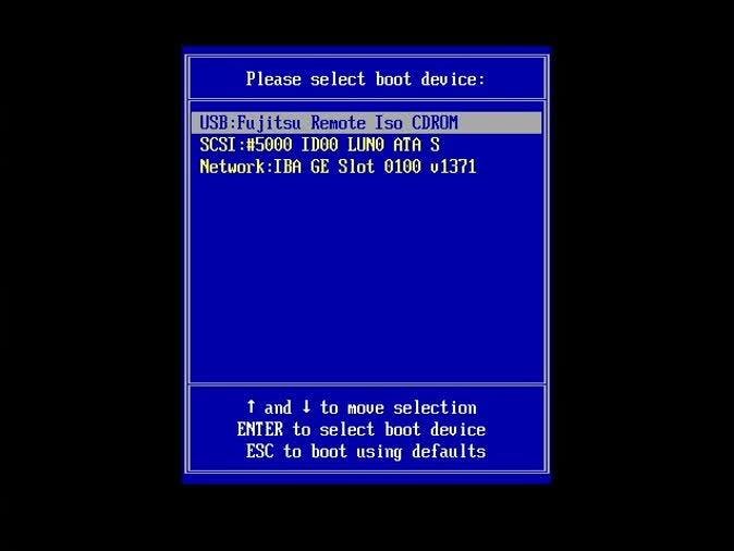 Een standaard bootmenu waarmee je vanaf de usb-stick kunt starten.