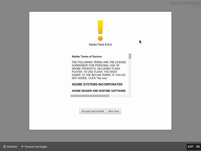 Flash is geen onderdeel van Chromium, dat CloudReady gebruikt, dus moet dat apart worden geïnstalleerd.