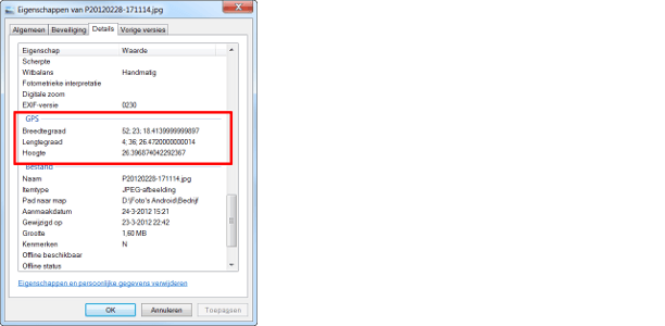 Windows Verkenner verklapt of er locatiegegevens in een foto zitten.