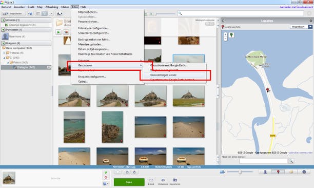 De gratis fotobeheerder Picasa kan op een plattegrond laten zien waar uw foto's gemaakt zijn. Allereerst is op de miniatuur direct te zien of er wel locatiegegevens in de foto zitten. In de hoek rechtsonder is dan een pictogram van een rood ballonnetje zichtbaar. Als er nog geen plattegrond te zien is, schakelt u het deelvenster Locaties in door in de menubalk te kiezen voor Beeld / Locaties. Of klik rechtsonder in het programmavenster op de knop met de rode ballon. Kies vervolgens een fotominiatuur door erop te klikken en u ziet op de plattegrond waar deze foto gemaakt is. Meerdere foto's tegelijk selecteren mag ook. Dan komen er meerdere ballonnen op de kaart te staan. Wilt u weten welke foto bij een bepaalde ballon hoort? Klik dan op die ballon, ernaast verschijnt dan een miniatuur van de bijbehorende foto.