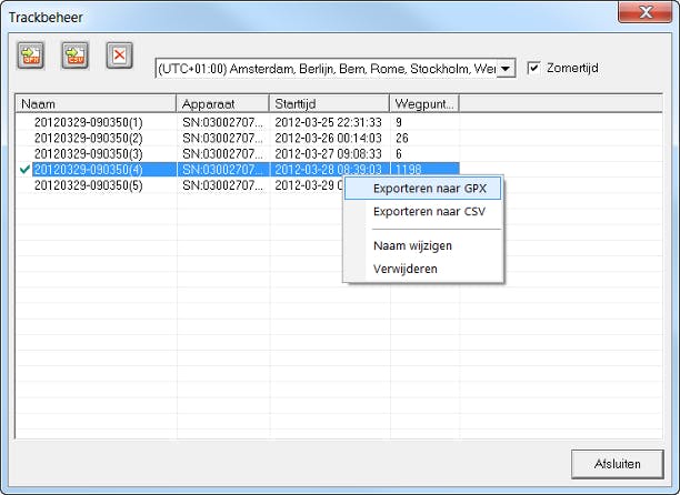 Het met de gps-tracker meegeleverde programma kan altijd wel een gpx- of kml-bestand aanmaken.