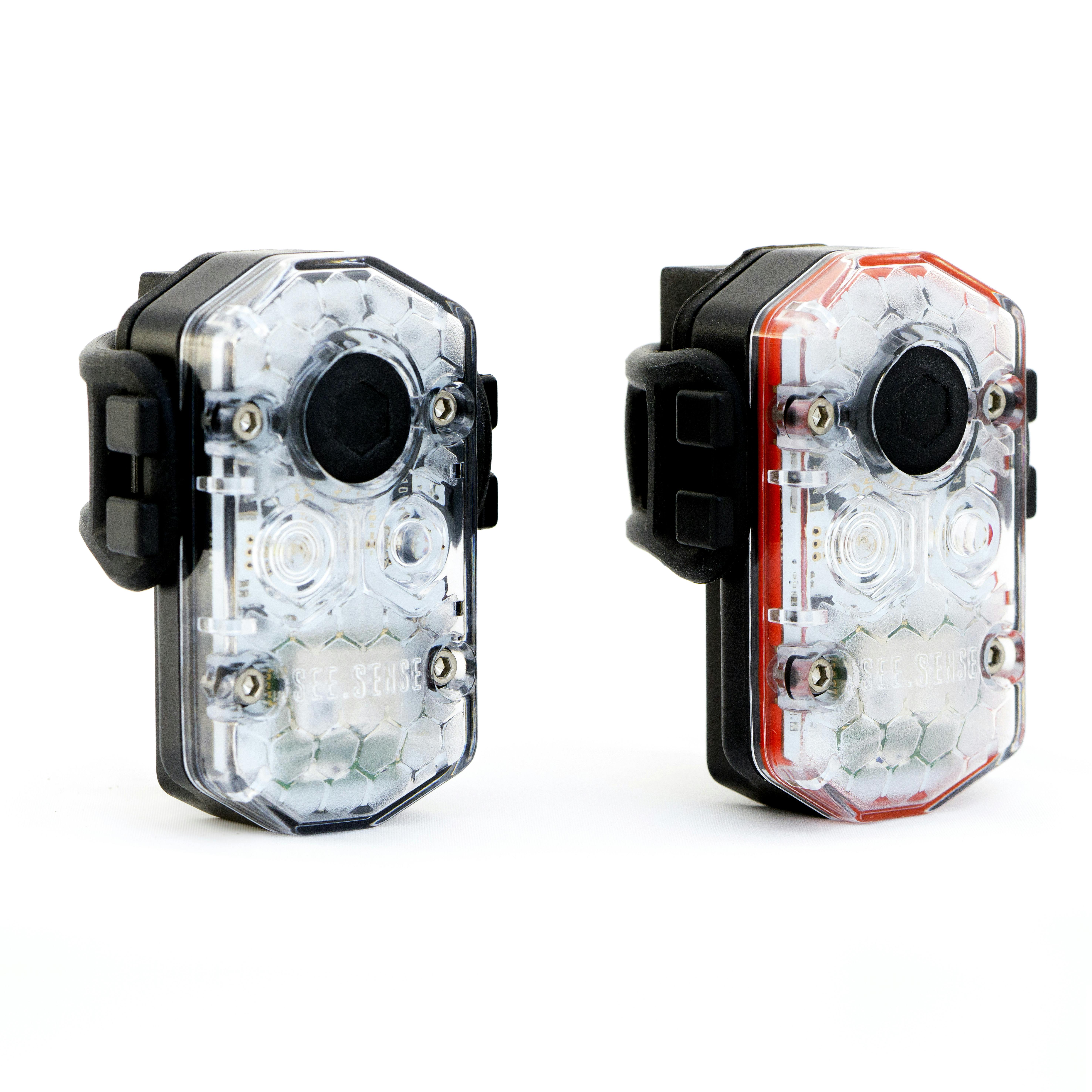 Je een ongeluk trappen om je dynamo aan te zwengelen zodat je een beetje zichtbaar bent in het donker? Dat is eigenlijk niet meer van deze tijd. Dat kan veel gemakkelijker. Bijvoorbeeld met de See.Sense Icon set. Dat zijn lampjes die met behulp van een bewegingssensor reageren op de omgeving. Rijd je op een rotonde of benadert een auto je ’s avonds, dan schijnen de Icon-lampjes feller zodat het verkeer om je heen je beter ziet. Je kunt ze ook laten knipperen maar dat is in Nederland niet toegestaan.