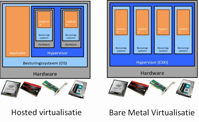 De bekendste vorm van virtualisatie is wat we 'host-virtualisatie' noemen. Daarbij maak je bovenop Windows of Linux met behulp van een virtualisatieprogramma één of meer virtuele machines. Deze vorm van virtualisatie heeft een aantal onoplosbare nadelen. Zo verbruikt het besturingssysteem van de pc een flink deel van de processor en het geheugen, en blijft er dus minder over voor de virtuele machines. Ook moet je altijd dat onderliggende besturingssysteem weer beveiligen en updaten. Er is een ander soort virtualisatie dat we 'bare-metal-virtualisatie' noemen en die heeft deze nadelen niet. Er is in dit scenario namelijk geen onderliggend besturingssysteem, de virtualisatiesoftware installeer je direct op de kale pc.