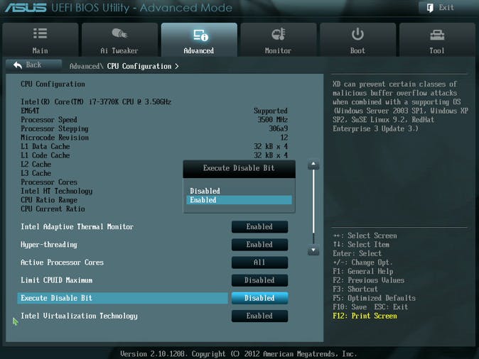 De optie Execute Disable Bit moet in het BIOS worden aangezet om ESXi te kunnen gebruiken.