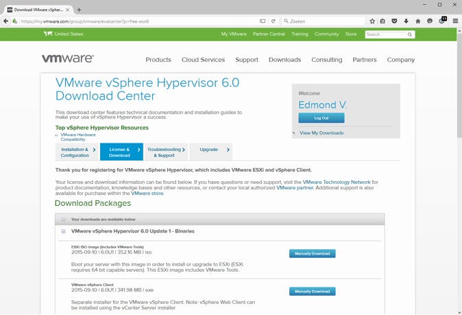 Download zowel de ESXi ISO als de VMware vSphere Client, beide heb je nodig.