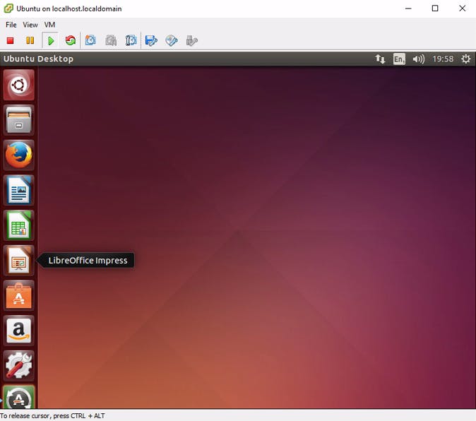 Om de computer te bedienen moet je muis en toetsenbord telkens losmaken uit de virtuele machine: dit doe je met de Ctrl- en Alt-toetsen.