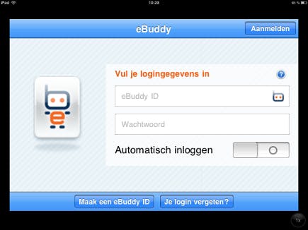 Een notebook wordt natuurlijk niet alleen maar gebruikt voor zakelijke toepassingen. Soms wilt u gewoon even chatten met vrienden of familie. Opmerkelijk genoeg bieden de leveranciers van de belangrijkste diensten voor instant messaging (zoals Live Messenger, Gtalk en iChat) geen software die chatten mogelijk maakt via een tablet (al kunt u wel een telefoonversie van Android downloaden voor Live Messenger). Gelukkig zijn hun netwerken dusdanig open dat derde partijen er ook software voor kunnen schrijven. De ideale app voor zowel Android als iOS is eBuddy. Deze applicatie stelt u in staat om te chatten via de netwerken van MSN, Facebook, Hyves, Yahoo, AIM (met iChat-koppeling), ICQ, Gtalk en Myspace. De basisversie van eBuddy is gratis, maar voor iOS is er ook nog een betaalde versie waarmee u foto's kunt verzenden en ontvangen. De verschillende app-versies zijn nog niet 'tablet native'. Daarmee wordt bedoelt dat u ze wel kunt gebruiken, maar dat ze nog niet zijn geoptimaliseerd voor gebruik op een tablet.
