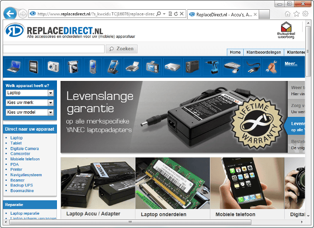 Laptop-accu's zijn alles behalve universeel. In de meeste gevallen hebt u voor uw merk en model een specifiek exemplaar nodig. Deze kunt u het beste via internet kopen bij gespecialiseerde websites als Adapter Centrum, ReplaceDirect of Smartaccu. Op dit soort websites kunt u zoeken op merk en type notebook. Een niet originele laptop-accu van de fabrikant wordt ook wel een compatible-battery of compatible-accu genoemd. De prestaties hiervan zijn in veel gevallen beter dan de originele accu van uw laptopfabrikant. Om een accu te verwisselen hebt u vrijwel nooit een schroevendraaier nodig. De accu is bevestigd met een kliksysteem aan de onderkant of achterzijde van uw notebook. Als u de accu uit uw notebook verwijdert, kunt u het type aflezen en Google gebruiken om een scherpe aanbieding te vinden. Gebruik het Engelse zoekwoord battery in plaats van accu voor meer resultaten. Koopjes zijn ook te vinden op Marktplaats en eBay.