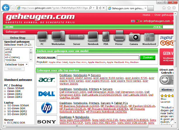Het werkgeheugen upgraden of vervangen als u over slechts 512 MB (of minder) beschikt is geen must om dit artikel te kunnen volgen, maar wel een aanrader om de prestaties van uw oude laptop op te krikken. U kunt het geheugen achteraf altijd upgraden zonder dat u hierbij bestanden verliest. Raadpleeg de handleiding van de laptop om erachter te komen hoeveel werkgeheugen u maximaal kunt plaatsen. Zoek op de website van de fabrikant naar de pdf-handleiding als u de papieren versie niet meer kunt vinden. Bij zeer oude modellen kan het werkgeheugen bijvoorbeeld beperkt zijn tot 768 MB. Net als voor de accu geldt voor het werkgeheugen: niet kopen bij de fabrikant als uw portemonnee u lief is. Ga naar een gespecialiseerde webwinkel als Geheugen.com, Informatique of ReplaceDirect. Gebruik hier de geheugenwizard om het juiste geheugen te vinden bij uw laptop. De webwinkel Interngeheugen.com onderzoekt uw notebook op afstand en vertelt precies wat u nodig hebt.
