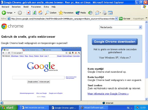 Omdat de lap-netbook voornamelijk wordt gebruikt om mee te internetten, is een goede webbrowser essentieel. Tijdens het draaien van de Windows Updates, wordt Internet Explorer bijgewerkt naar de meest recente versie. Deze webbrowser is alles behalve ideaal op de oudere hardware van uw lap-netbook. Gelukkig zijn er goede alternatieven waarvan Google Chrome het snelste werkt. Chrome werkt vlotter op oude laptops dan andere browsers en zeurt niet om updates. De browser werkt zichzelf in de achtergrond netjes bij, zodat u altijd de nieuwste websites kunt bezoeken.