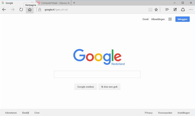 Wat je nu nog moet doen, is de startpagina-knop toevoegen aan Edge, standaard staat die er namelijk niet. Blader omlaag in de instellingen van Edge en ga naar Geavanceerde instellingen. Zet De knop Startpagina weergeven op Aan en typ in het vak eronder www.google.nl. Bevestig met Opslaan. Klik nu buiten de instellingen van Edge om dit onderdeel te sluiten. Links naast de adresbalk van de browser zie je nu de knop voor de startpagina. Kik erop en je zult zien dat Edge een stuk bruikbaarder is geworden.