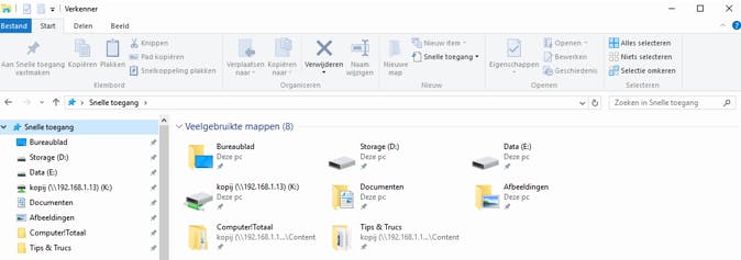 Klik met de rechtermuisknop op een station of map in de lange lijst in de linkerkolom en kies dan Aan snelle toegang toevoegen. Deze mappen komen nu bovenaan in de linkerkolom te staan. Binnen deze selectie kun je de locaties verslepen om ze in een volgorde te zetten die voor jou handig is. Staat er een map bij de Snelle toegang die jij juist niet belangrijk vindt, klik dan op die map met de rechtermuisknop en kies Van snelle toegang losmaken. Zo kun je de lijst helemaal naar eigen voorkeur samenstellen. Ook nog handig: klik op op Bestand > Algemeen en kies bij Verkenner openen in voor Deze pc.