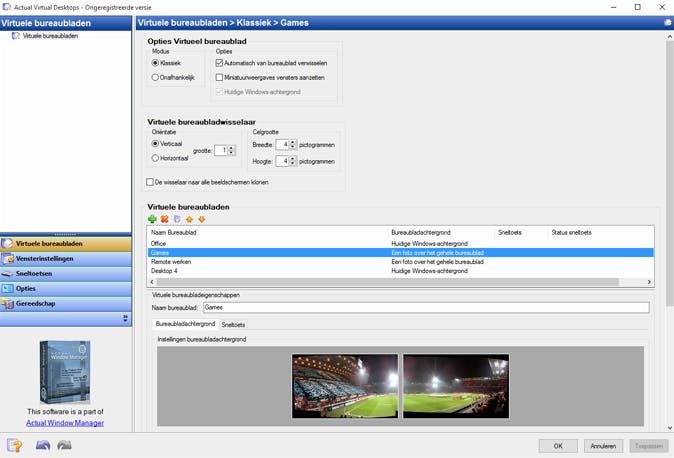 Actual Tools Virtual Desktops is een mooi allround programma voor het gebruik van meerdere bureaubladen in Windows.