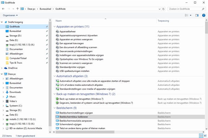 Alle configuratieopties handig bij elkaar in één map dankzij de GodMode.