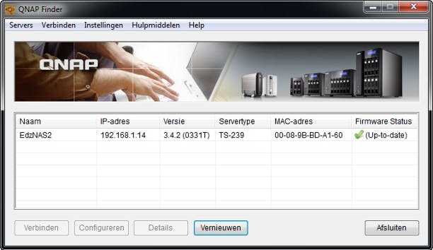 Eenmaal aangeschaft en soms zelfs geïnstalleerd door een kennis, verdwijnt de NAS vaak uit beeld bij de computergebruiker. Het gebruiken van alle mogelijkheden is vaak toch net even moeilijker dan verwacht. Waar zat die NAS ook alweer? Iedere NAS is bereikbaar op zijn IP-adres in het thuisnetwerk en bijna iedere NAS kan via de webbrowser worden beheerd en geconfigureerd. Bent u het IP-adres vergeten of reageert de NAS niet meer na een keer uitgeschakeld te zijn geweest wanneer de browser opent, spoor de NAS dan op in het netwerk. Elke NAS-leverancier levert daarvoor een zoekprogramma mee dat u van de site van de leverancier kunt downloaden en starten. Bij QNAP heet dat bijvoorbeeld de QNAP Finder en bij Synology de Synology Assistant. Download en installeer dat programma, en laat het daarna de NAS opzoeken. Zodra de NAS is gevonden, noteert u het IP-adres en klikt u bijvoorbeeld op Verbinden. Een andere mogelijkheid is de webbrowser openen en in de adresbalk http:// te typen, direct gevolgd door het IP-adres. Uw NAS is weer terug!