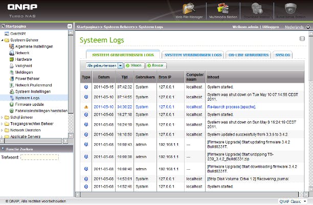 Controleer met enige regelmaat de foutloze werking van de NAS door de logboeken te bekijken.