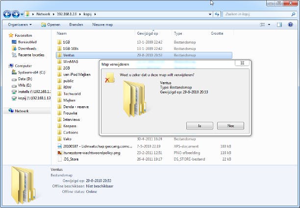 Met de juiste inloggegevens kunt u nu vanaf elke pc in het thuisnetwerk een back-up maken in de verborgen back-upmap op de NAS.