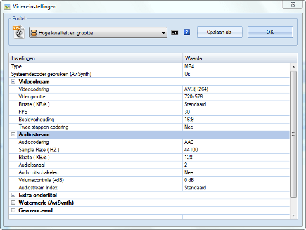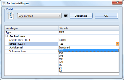 Is het bronmateriaal van goede kwaliteit? Kies dan voor een hoge waarde achter Bitrate.