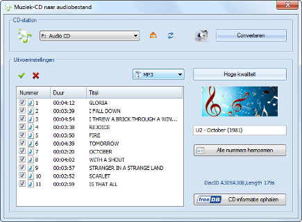 Met behulp van een enkele klik kunt u gegevens van een cd ophalen uit een online database.