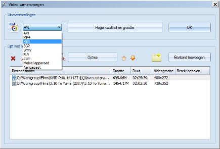 Beslis in welk uitvoerformaat u de bestanden wilt samenvoegen.