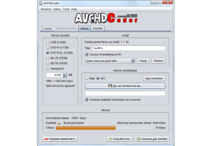 Op het tabblad Uitvoer controleert u onderaan hoe het is gesteld met de bitrate. Als deze te laag is, krijgt u het advies geen converteertaak te starten. Zolang de bitrate hoger is dan 4500 kbps hoeft u zich hierover geen zorgen te maken. U beschikt aan de linkerkant over opties om het uitvoermedium eventueel te wijzigen. Zo maakt u eenvoudig een film met een aangepaste bestandsomvang. Dat is bijvoorbeeld zinvol als u een leuke film op een usb-stick wilt zetten. Bedenk achter Titel welke naam u de schijf wilt geven en voeg eventueel een zelfgemaakt menu toe. U slaat de film op als mappenstructuur of als iso-image. De laatstgenoemde mogelijkheid werkt het gemakkelijkst, omdat u in dat geval maar een enkel bestand op de dvd hoeft weg te schrijven. Via Sla .iso bestand op als kiest u een opslaglocatie. Bedenk onder welke naam u het bestand wilt bewaren, waarna u bevestigt met Save. Klik op Voeg toe aan wachtrij / Yes en kies in het volgende scherm voor Start Converteren. U kunt de voortgang nauwlettend in de gaten houden. De tijd die voor het proces nodig is, is sterk afhankelijk van de systeemprestaties, maar houd in ieder geval rekening met enkele uren. Het brandprogramma ImgBurn wordt bij AVCHDCoder meegeleverd. Hiermee brandt u uw iso-image op een schijfje. Navigeer hiervoor naar Tools / ImgBurn. Houd er rekening mee dat u avchd-films alleen op een blu-ray-speler kunt weergeven. Dvd-spelers zijn niet in staat om dit formaat te lezen.