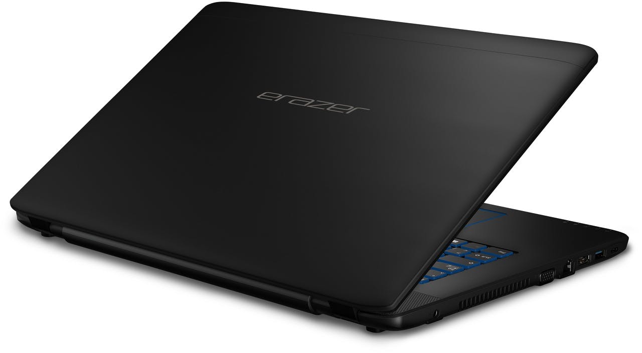 Ook de Medion Erazer P7651 is wat sober weergegeven, maar dan juist in de positieve zin: niet iedereen is gediend van de extra franje die je vaak bij gaminglaptops aantreft. De Erazer is namelijk gewoon zwart. De hoeken zijn schuin afgewerkt, waardoor hij makkelijk in je (grote) rugzak glijdt. Een grote rugzak heb je overigens wel nodig, want de laptop meet 42 bij 28 cm en is 2,8 cm dik. Met een gewicht van 2,7 kilo ook niet een van de lichtste laptops, maar dat is voor een gaminglaptop vrij gebruikelijk. Het 17,3-inch scherm is mat afgewerkt, waardoor het beeld misschien niet meteen sprankelend overkomt, maar het voordeel is dan weer wel dat je geen last hebt van reflecties. Medion heeft voor deze laptop gebruikgemaakt van een AVHA-scherm: in feite is dat een IPS-panel, maar dan met een iets betere kijkhoek. De laptop heeft geïntegreerde speakers aan de bovenzijde van het toetsenbord. Een prima plek, maar qua geluidsproductie valt het ietwat tegen: weinig bas, vooral wat blikkerig geluid. De meeste gamers zullen echter sowieso gebruik maken van een koptelefoon.