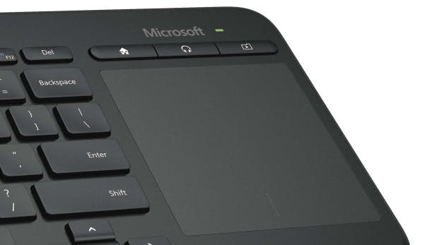 Microsofts All-in-One Media Keyboard is voorzien van een geïntegreerd touchpad. Een nieuw idee is dat niet, Logitech verkoopt al geruime tijd de K400 en bracht onlangs het Logitech Illuminated Living-Room Keyboard K830 op de markt. Een groot verschil is dat Microsofts televisietoetsenbord in tegenstelling tot Logitechs K830 niet is voorzien van toetsverlichting. We hebben Logitechs K830 onlangs ook getest. Lees ook: Review Logitech Illuminated Living-Room Keyboard K830.