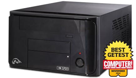 Als u niet zo’n trek hebt in een kant-en-klare pc, dan is de Shuttle SH55J2 misschien iets voor u. Dit is in tegenstelling tot de rest van de producten in deze test een barebone, die u zelf moet aanvullen met geschikte onderdelen. Hij is dan ook niet direct vergelijkbaar met de rest van de producten in deze test en hij is dus minder goedkoop dan het prijskaartje doet vermoeden. U dient immers zelf bijvoorbeeld een processor, geheugen en opslag te plaatsen. Op zich is dit product van Shuttle niet zo gek. Het is erg lastig om op het Mini-ITX-platform behuizingen en moederborden te vinden die goed op elkaar passen. Er is altijd wel geknoei met kabels die niet lang genoeg zijn en een moederbord-lay-out die net niet optimaal is met de behuizing, waardoor het plaatsen van componenten en kabels een ware uitdaging is. Bovendien zijn de onderdelen, wanneer u die afzonderlijk koopt, behoorlijk aan de prijs. De Shuttle SH55J2 is alleen voorzien van een moederbord, Heatpipe CPU-koeling en voeding. Het is verder aan u welke onderdelen u nog meer essentieel acht om de perfecte pc te bouwen. U hebt ruimte voor een enkele optische speler en twee 3,5inch-schijven, waarvoor u vier SATA-aansluitingen hebt. Het systeem beschikt over vier DDR3-geheugenbanken. Om gebruik te maken van de Intel HD Graphics, naar onze mening op dit moment de handigste chipset voor HD-video op de tv, moet u een Core i3 5xx of Core i5 sb 3.0 op het moederbord zitten, u moet dus een uitbreiding kopen op PCI Express indien u usb 3.0 wenst. Ook wifi zult u met een uitbreidingskaart moeten toevoegen aan het systeem. Wij raden aan om indien mogelijk voor een PCI-variant te kiezen, zodat u het PCI Express slot vrijhoudt.