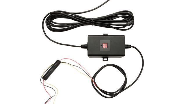 Deze modus werkt echter alleen als je de apart verkrijgbare Mio MiVue Smartbox monteert, die de camera voedt zonder gevaar dat de accu leegloopt. De MiVue 785 heeft immers geen echte ingebouwde accu, maar alleen een accumulator van 240 mAh die ervoor zorgt dat de geheugenkaart niet gecorrumpeerd wordt wanneer de voeding uitgeschakeld wordt terwijl de camera nog opnamen aan het wegschrijven is. Na montage van de Smartbox wordt de autolader niet meer gebruikt, maar de montage is wel een karweitje voor een handig iemand die een beetje van autotechniek kent. De 0,5A accu van de Smartbox voorziet de dashcam meerdere uren tot zelfs langer dan een dag van stroom.