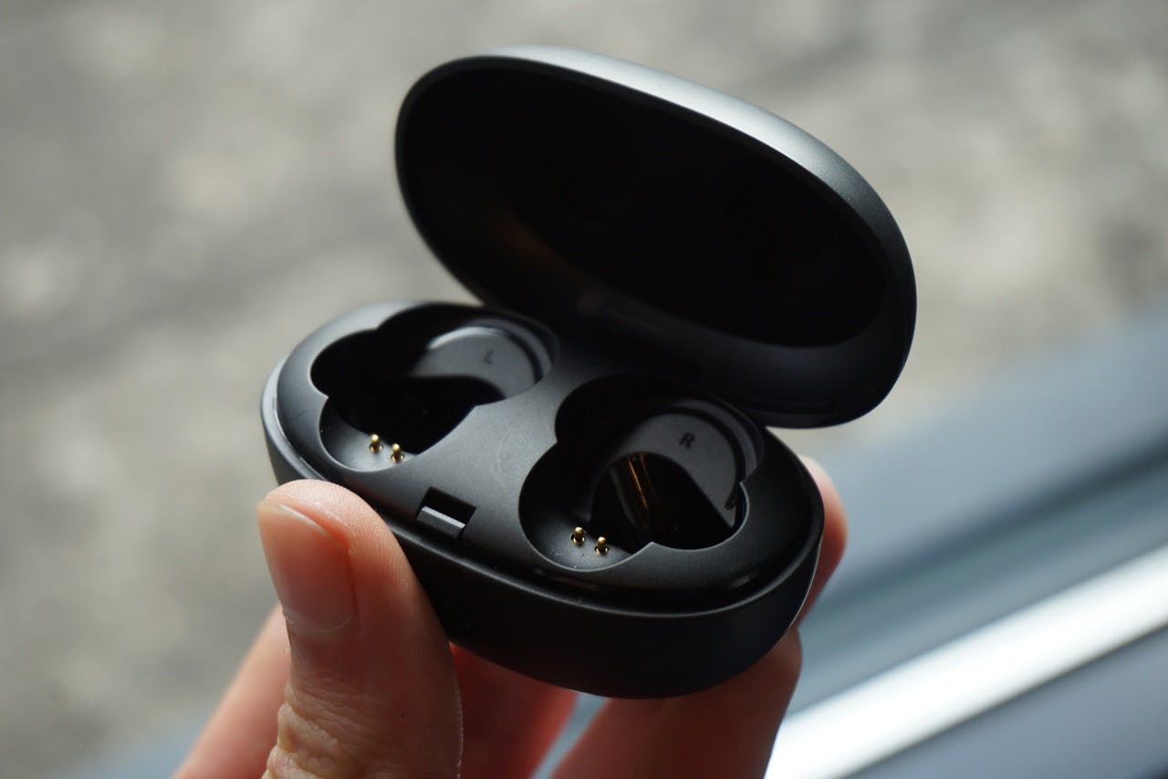 Aan het verkooppakket ligt het in ieder geval niet. De oordopjes komen in een luxe verpakking met naast het opbergdoosje ook een apart opbergzakje, micro-usb-kabel en verschillende soorten oortips voor een passende vorm. Het oplaaddoosje laat eveneens een goede indruk achter. Hij heeft het formaat en gewicht van een ei en is gemaakt van hard kunststof. De matte afwerking maakt het materiaal ongevoelig voor vingerafdrukken. Op de voorkant van het doosje zit een drukknop. Eén keer drukken en de deksel klapt open, waardoor de oordopjes tevoorschijn komen. Het doosje sluit met een duidelijke klik. Op de achterkant is een micro-usb-poort geplaatst om de accu van het doosje op te laden.