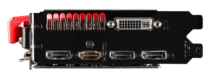 De MSI GTX 960 Gaming 2G biedt DVI, HDMI 2.0 en drie keer DisplayPort.