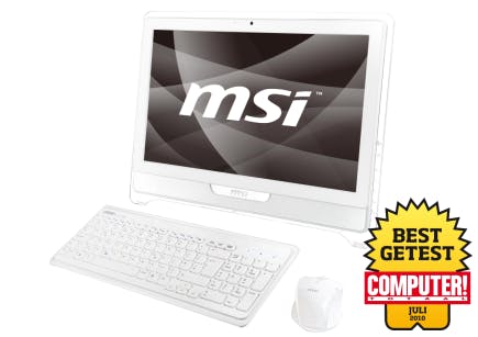 De MSI Wind Top AE2220 is dankzij zijn witte kleur een opvallende verschijning op uw bureau. Net als Packard Bell heeft ook MSI zijn all-in-one van een doorzichtige lijst voorzien. De Wind Top laat zich neerzetten als een fotolijstje en is voorzien van een scherm met een diagonaal van 21,5 inch met een resolutie van 1920 x 1080. De MSI beschikt over een Intel Core 2 Duo T6600 aangevuld met 4 GB intern geheugen. De grafische weergave wordt verzorgd door NVIDIA’s ION. Deze grafische chip is in tegenstelling tot de door Packard Bell gebruikte Intel GMA 4500M wél in staat om HD-videomateriaal vloeiend af te spelen. Het meegeleverde setje van toetsenbord en muis is net als de pc zelf uitgevoerd in wit en is draadloos. Met het toetsenbord is te werken, maar de muis is net een maatje te klein. MSI heeft gekozen voor een 64 bit uitvoering van Windows 7 Home Premium. Hierdoor wordt de volledige 4 GB systeemgeheugen aangesproken door Windows. We hebben weinig aan te merken op de MSI Wind Top AE2220. U moet van het witte kleurtje houden, maar er is ook een zwarte uitvoering verkrijgbaar. Al met al is de Wind Top AE2220 een prettige machine waarmee we prima uit de voeten kunnen!