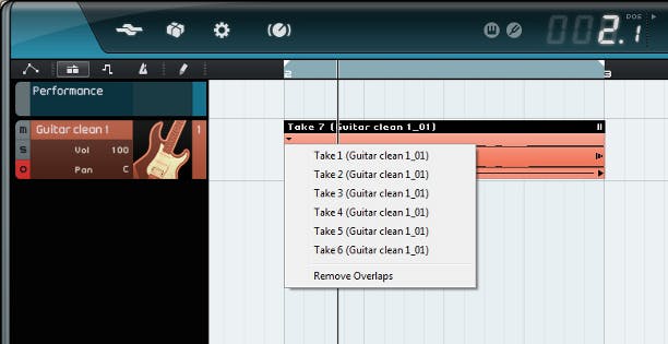 Een aangemaakt spoor in Sequel, in dit geval voor een gitaar.