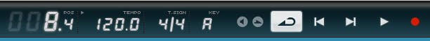 Als u de drumloop een paar keer achter elkaar hebt gezet door het middelste symbool naar rechts te slepen, kunt u van dit deel een loop maken. Ga hiervoor naar de transportsectie en klik op de knop Cycle. Deze vindt u links van de terugspoel-knop. Nu moet u alleen nog een loop of cycle definiëren. Dit doet u door boven de sporen aan het driehoekje te trekken. Sleep het naar rechts, zodat er een lichtblauwe streep over de maatcijfers verschijnt. U kunt ervoor kiezen om de hele muziektrack iets sneller af te spelen. Dubbelklik op 100.0 in de transportsectie en type hier bijvoorbeeld 110 in, om het tempo van de compositie te versnellen.