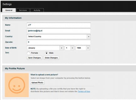 Naast afspeelmogelijkheden kent Grooveshark ook sociale functies. Hiervoor kunt u uw profiel instellen. Door rechtsboven op uw gebruikersnaam en vervolgens op My Profile te klikken, ziet u hoe uw profiel er voor de buitenwereld uitziet. Klik rechtsboven op Settings om instellingen te wijzigen. Onder General kunt u uw persoonlijke gegevens wijzigen, een schermafbeelding uploaden en uw afspeelinstellingen aanpassen. Op het tabblad Services kunt u een koppeling maken met bijvoorbeeld Facebook. Activity herbergt uw privacyinstellingen: wat deelt u en met wie.