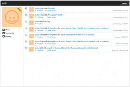 Grooveshark kent wat sociale functies. De belangrijkste is de koppeling met Facebook, waar u uw favorieten en afspeellijsten kunt delen. Maar binnen Grooveshark zitten ook wat eigen sociale mogelijkheden. Via het tabblad People zoekt u eenvoudig andere gebruikers op. U voegt deze mensen toe aan uw netwerk door het profiel te bekijken en rechtsboven te klikken op Follow. De activiteiten van de personen die u volgt, ziet u terug onder Community. U kunt alleen zien wat mensen zelf voor publiek toegankelijk maken. Meer interactie dan het onderling delen van muziek zit er niet in.