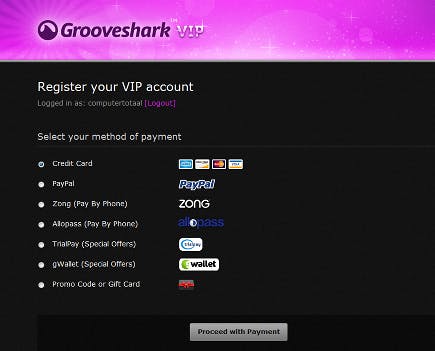 Net als Spotify kent ook Grooveshark een betaalde versie. Bij Grooveshark is er maar één abonnement mogelijk, in tegenstelling tot de Unlimited en Premium accounts van Spotify. Betalende Grooveshark-gebruikers worden VIP's genoemd en krijgen extraatjes zoals thema's, een desktopapplicatie en een mobiele app. Ook ontbreken reclamebanners. VIP's kunnen muziek delen via hun Last.fm-account. Tot december betalen VIP's drie dollar per maand. Wat de abonnementskosten na december worden is op het moment van schrijven nog onbekend.