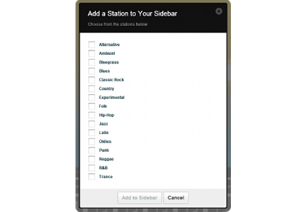 Radio luisteren met Grooveshark is erg leuk. In de linkerbalk staan een paar genres die het radiostation draait, de 'zendmast' naast de Radio-knop geeft er nog veel meer. U kunt ze zelf aan de linkerbalk toevoegen door te klikken op Add / New Station. Voor ieder is er wat wils, de radio speelt van klassiek tot trance en van metal tot latin. Wanneer u een radiostation kiest, vult de strip zich automatisch met nummers uit het gekozen genre. Grooveshark kiest zelf muziek uit de gigantische database, en zorgt dat er altijd een nummer klaarstaat. Het gaat dus, net als een echt radiostation, altijd door.