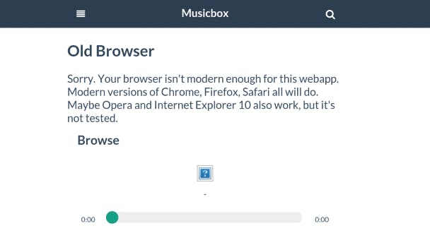 Pi MusicBox vereist een moderne browser om de webinterface te kunnen gebruiken. Dat betekent minimaal Firefox 11, Chrome 14, Internet Explorer 10 of Safari 6; of (in alle gevallen) een hoger versienummer. Heb je een recente iPad of iPhone, dan is de ondersteuning ook goed. De standaard Android-browser is minder goed ondersteund. De ontwikkelaar van Pi MusicBox raadt daarvoor in de plaats Chrome Mobile of Firefox Mobile aan, die wel met de webinterface overweg kunnen.
