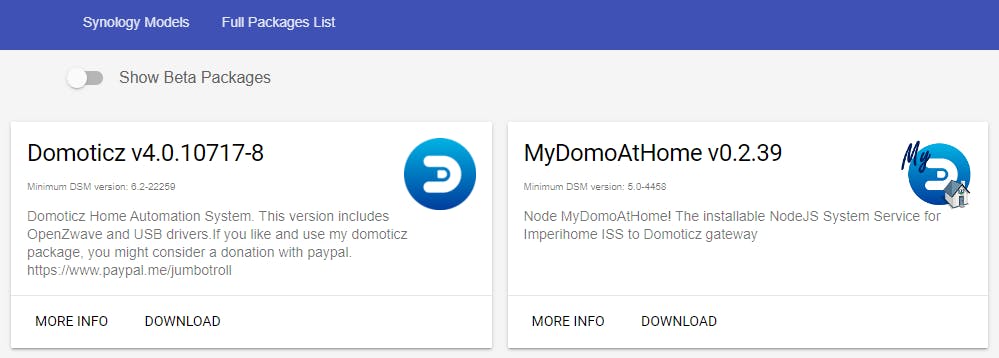 Hoewel Domoticz een van de meest populaire uitbreidingen voor domotica op een nas, vind je het pakket niet in het Package Center van Synology. Daarvoor moet je naar de website van ontwikkelaar Jadahl. Jadahl levert een groot aantal gecompileerde versies van Domoticz voor verschillende versies van Synology DSM én Synology nas-modellen. Het is dus belangrijk te weten welk model nas je hebt en welke softwareversie van het DSM-besturingssysteem daarop draait.
