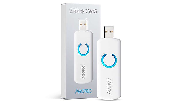 Domoticz is één van vele domotica-gateways, maar een van de weinige die opensource is en gratis. Het ondersteunt zowel het Z-Wave-protocol als de goedkopere en eenvoudigere 433MHz-communicatie (Klik-aan-Klik-uit). Voor gebruik in combinatie met een nas is een Z-Wave-antenne aan te raden. Veel webshops verkopen die voor een paar tientjes zoals de USB Z-Wave Plus-controller van Aeon Labs of AeoTec (zie bovenstaande afbeelding). Z-Wave heeft als voordeel dat het net als Domoticz open is en tweewegcommunicatie ondersteunt net als mesh-technologie. Je kunt dus altijd de actuele status van een schakelaar of apparaat zien.