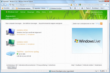 Met Windows Live Sync kunt u data tussen verschillende apparaten synchroniseren.