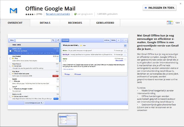 Offline Google Mail kunt u via de Chrome Web Store downloaden. Let wel op dat de app alleen geschikt is voor Googles eigen browser Chrome.