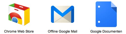 Op uw Chrome startpagina verschijnen icoontjes van de offline versies van Documenten en Mail.
