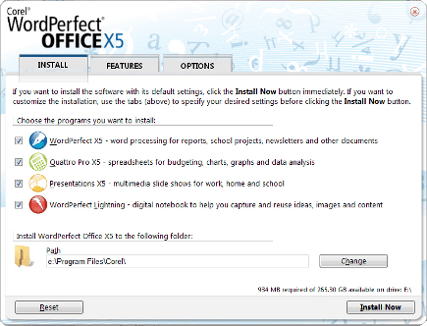 Van het aloude WordPerfect is een jaar geleden versie X5 op de markt gebracht, als tegenhanger voor Microsoft Word. De standaardeditie bevat de basisprogramma's van Office. Er is een probeerversie (344 MB) die u dertig dagen kunt gebruiken en waarbij alle functies volledig werken. Overigens is er ook een pakket genaamd WordPerfect Viewer, dat is ontwikkeld voor de iPad en de iPhone.