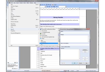 Het kan soms erg handig zijn en effectief werken als u bestanden direct met anderen kunt delen. WordPerfect biedt hier een aantal opties voor. U kunt een bestand uiteraard opslaan en vervolgens direct delen in Dropbox, maar als u in de taakbalk naar File / Send to gaat, ziet u nog meer opties. Zo kunt u bestanden delen via programma's als Skype en Evernote (mits die zijn geïnstalleerd) en daarnaast biedt WP nog verschillende mail- en faxfuncties. Ook LibreOffice ondersteunt het mailen van artikelen, en het maakt het mogelijk om een tekst automatisch om te laten zetten naar het pdf- of doc-formaat, zodra u het invoegt in een e-mailbericht. Ook Celframe kan bestanden opslaan in, en omzetten naar verschillende formaten, zodat ze altijd door anderen kunnen worden gebruikt of worden geüpload naar bijvoorbeeld Google Docs. Uiteraard vindt u in het bestandsmenu van dit pakket ook een e-mailfunctie.
