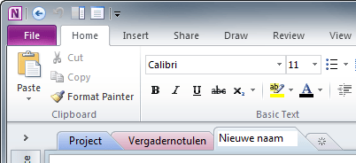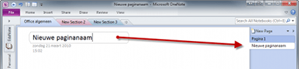 De Secties, de tabbladen bovenin OneNote, krijgen standaard de naam New Section met een nummer. Dat is niet handig. Om een Sectie van een zelfbedachte naam te voorzien, dubbelklikt u op het tabblad, zodat de standaardnaam van de sectie wordt geselecteerd. Typ vervolgens een naam in die u beter vindt passen bij die sectie en bevestig met Enter.