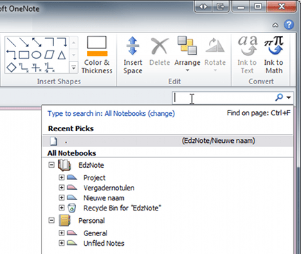 OneNote kent een eigen zoekfunctie, die zeer krachtig is.